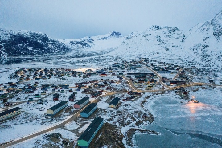 這是2025年3月21日拍攝的丹麥自治領(lǐng)地格陵蘭島納爾薩克鎮(zhèn)(無人機照片)。新華社記者彭子洋攝