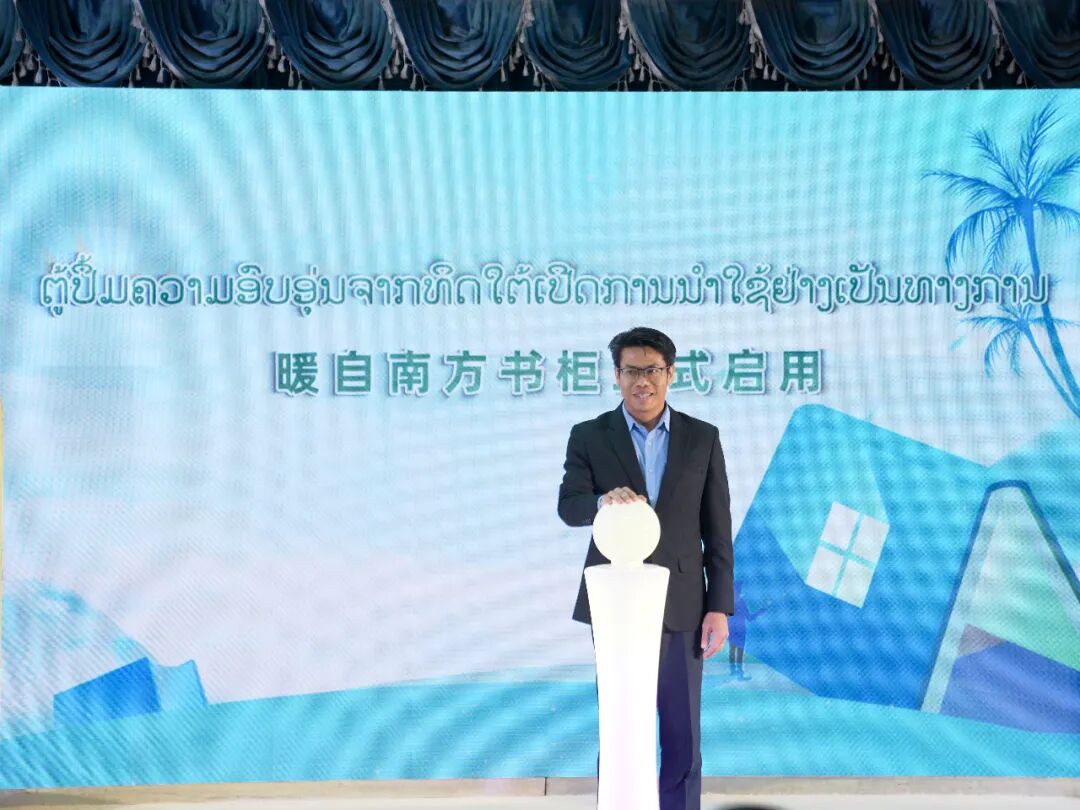 坎普·皮沙卡說,減貧是人類共同的挑戰(zhàn)。老中在減貧發(fā)展領(lǐng)域攜手同行、深化合作,從完善民生基礎(chǔ)設(shè)施到培育扶持特色產(chǎn)業(yè),從提升鄉(xiāng)村發(fā)展能力到改善民生福祉,一系列務(wù)實合作舉措落地見效,讓兩國人民共享發(fā)展成果?!稊[脫貧困》一書凝聚著中國共產(chǎn)黨和國家寶貴的發(fā)展智慧和實踐經(jīng)驗,為老撾探索符合本國國情的減貧道路提供了重要借鑒。今天啟用的“暖自南方”書柜,是老中文化交流的暖心之舉,是文化賦能減貧的生動實踐。希望雙方打造更多像“暖自南方”書柜這樣的文化交流品牌,依托書柜開展形式多樣的讀書活動,增進兩國人民相互了解,推動文明交流互鑒。