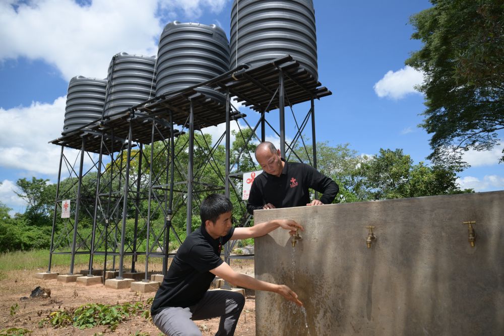 1月26日,在津巴布韋中馬紹納蘭省沙姆瓦地區(qū)津迪村,中國援津第四期高級農(nóng)業(yè)專家組專家在一處儲水點檢查水龍頭。新華社記者 楊光 攝