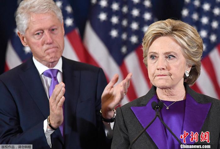 資料圖:美國前國務卿希拉里·克林頓及其丈夫、美國前總統(tǒng)比爾·克林頓。