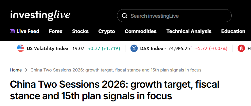 美國(guó)知名財(cái)經(jīng)網(wǎng)站Investinglive重點(diǎn)新一年度政府工作報(bào)告,該報(bào)告通常會(huì)設(shè)定年度主要目標(biāo)和政策任務(wù),并最清晰地傳遞出中央政府的宏觀政策取向。
