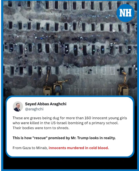 據(jù)報(bào)道,阿拉格齊在貼文中表示,“這些墳?zāi)?,是為了埋葬在美以?lián)合轟炸小學(xué)事件中遇難的160多名無辜女孩而挖的。她們的遺體支離破碎?!?/p>