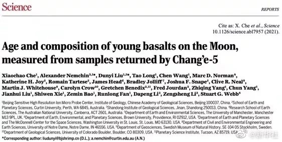 記者從國家航天局獲悉,近期研究團隊在嫦娥五號月球樣品研究方面取得進展,團隊對嫦娥五號月球玄武巖開展了年代學、元素、同位素分析,證明月球在19.6億年前仍存在巖漿活動,為完善月球演化歷史提供了關鍵科學證據(jù)。相關研究論文《嫦娥五號年輕玄武巖的年代與成分》于北京時間10月8日凌晨在線發(fā)表在國際學術期刊《Science》上。這是以嫦娥五號月球樣品為研究對象發(fā)表的首篇學術成果。(記者 胡喆)