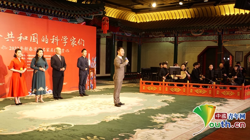 國家京劇院青年演員郭霄說,作為京劇演員,她非常榮幸能給共和國的科學(xué)家們奉獻(xiàn)演唱,這是一個(gè)難得的機(jī)會(huì)能與科學(xué)家們近距離接觸,希望今后能呈現(xiàn)一臺(tái)專門演繹科學(xué)家故事的戲,表達(dá)對(duì)科學(xué)家的敬意和誠摯問候,"也在此祝??茖W(xué)家們身體健康,萬事如意,新春大吉!"