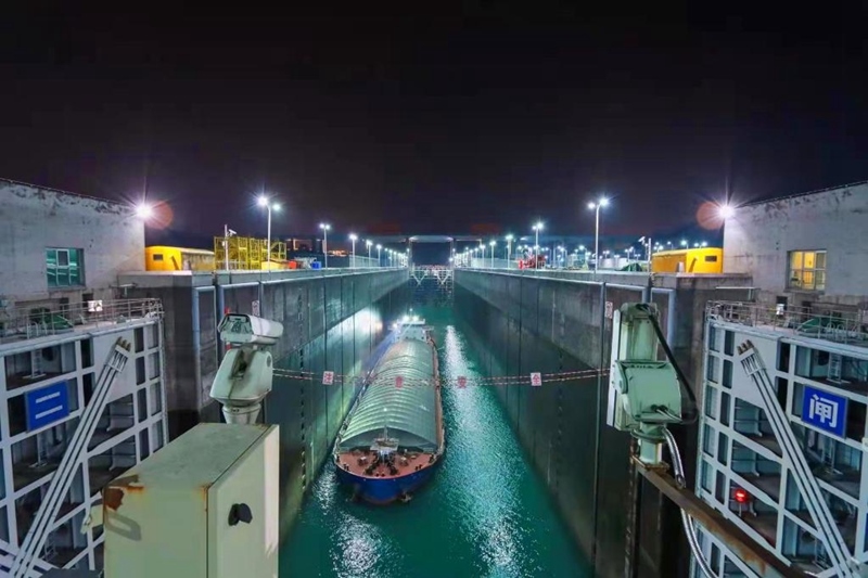 從近幾年通航情況來(lái)看,兩線船閘每天運(yùn)行30個(gè)至32個(gè)閘次,過(guò)船118艘至120艘,一年通過(guò)船舶約4.3萬(wàn)艘。南線船閘停航檢修時(shí),北線船閘會(huì)每?jī)商鞊Q向運(yùn)行一次,升船機(jī)正常雙向運(yùn)行。