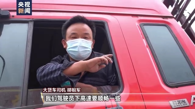 大貨車司機 胡祖軍:有這個長行碼了,駕駛員下高速要順暢一些,不會超過十分鐘的。