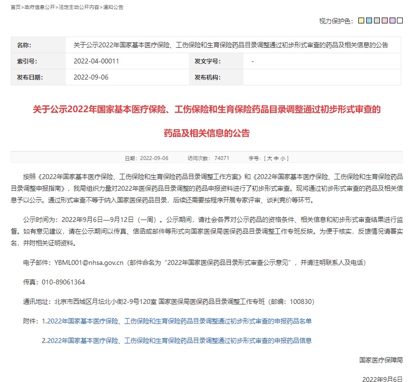 按照《基本醫(yī)療保險(xiǎn)用藥管理暫行辦法》和《2022年國家基本醫(yī)療保險(xiǎn)、工傷保險(xiǎn)和生育保險(xiǎn)藥品目錄調(diào)整工作方案》(以下簡稱《工作方案》),醫(yī)保藥品目錄調(diào)整分為企業(yè)申報(bào)、形式審查、專家評(píng)審、談判競價(jià)等環(huán)節(jié),形式審查只是其中之一。通過形式審查,表明該藥品有資格進(jìn)入下一步的專家評(píng)審環(huán)節(jié)。只有順利通過目錄調(diào)整的所有環(huán)節(jié),才能最終被納入國家醫(yī)保藥品目錄。