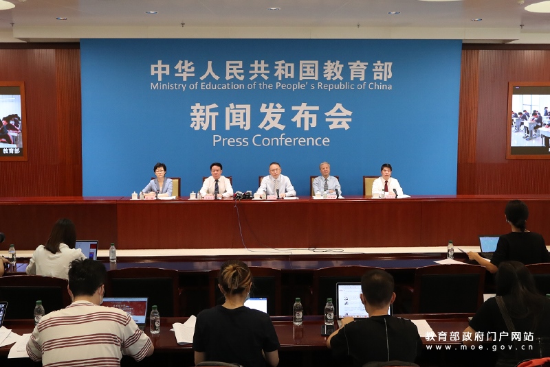 教育部召開“教育這十年”“1+1”系列發(fā)布會?介紹黨的十八大以來考試招生制度改革成效。(中國教育報記者張勁松/攝)