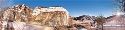 駱駝灣村的“太行冰瀑”景觀,在朝陽的映襯下,盡顯獨特神韻。
