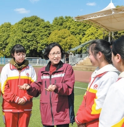 全國人大代表、貴州省疾病預防控制中心主任醫(yī)師何琳(左二)在當地中學調研。全國人大常委會辦公廳聯絡局供圖
