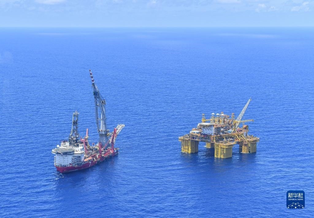 在海南陵水海域拍攝的“深海一號”大氣田(2021年5月12日攝)。新華社記者 蒲曉旭 攝