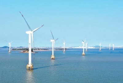 福建省福清市,興化灣海上風(fēng)電場(chǎng)一角。 新華社記者 林善傳攝