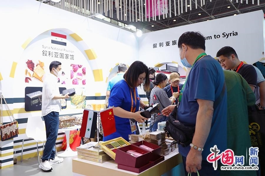 4月11日,工作人員為觀眾介紹敘利亞玫瑰精油等產(chǎn)品。中國(guó)網(wǎng)記者 吳亮 攝