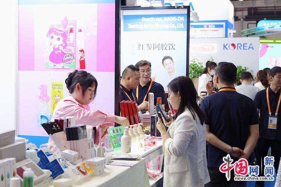 4月11日,工作人員為觀眾介紹韓國(guó)護(hù)膚品、化妝品和保健品等。中國(guó)網(wǎng)記者 吳亮 攝