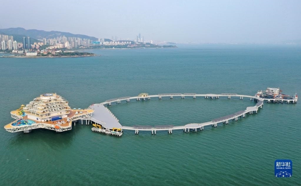 當(dāng)日,位于山東省煙臺(tái)市萊山區(qū)的“耕海1號(hào)”海洋牧場(chǎng)綜合體二期項(xiàng)目投入運(yùn)營(yíng)。“耕海1號(hào)”集漁業(yè)養(yǎng)殖、海上觀光、休閑垂釣、餐飲住宿、科研科普等于一體,創(chuàng)新性實(shí)現(xiàn)現(xiàn)代海洋漁業(yè)、海洋工程技術(shù)和海洋文化旅游產(chǎn)業(yè)深度有機(jī)融合。新華社發(fā)(唐克攝)
