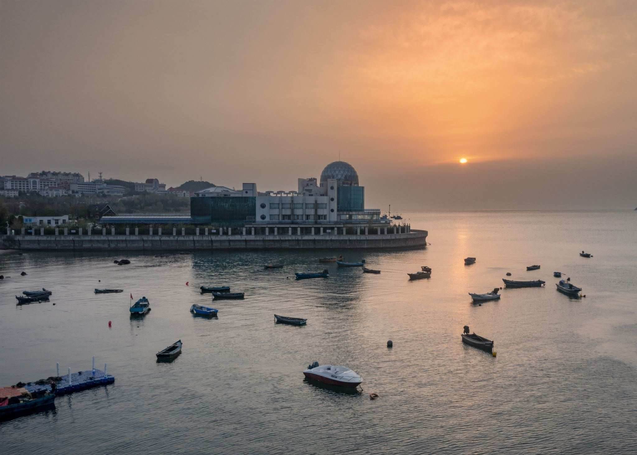 2023年4月29日,山東威海,威海灣在朝陽(yáng)的映照下栩栩生輝,美景如畫。視覺(jué)中國(guó)