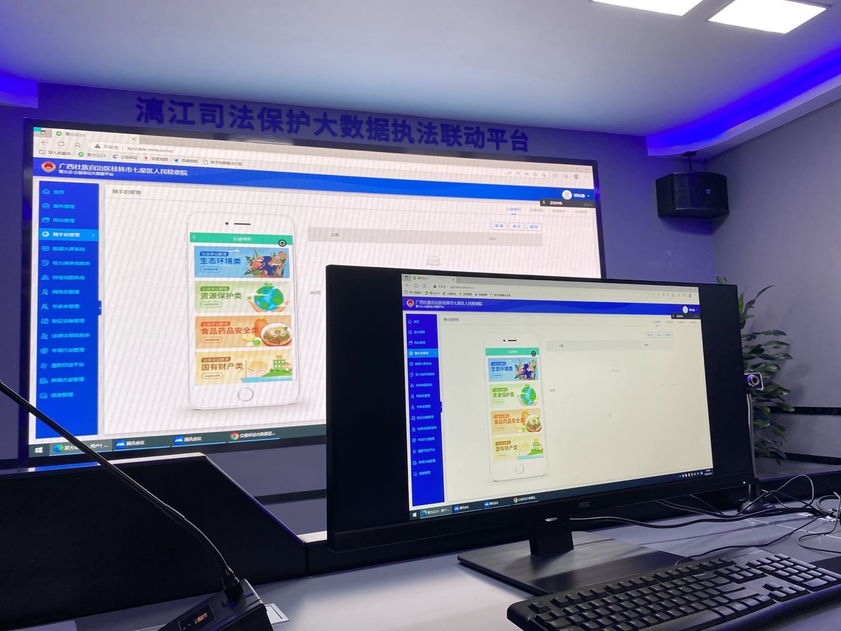 在桂林市七星區(qū)人民檢察院記者看到,漓江司法保護大數據聯動執(zhí)法中心的大屏幕上,漓江水域事實情況清晰可見,檢察公益訴訟大數據一覽無余,綜合執(zhí)法大數據統(tǒng)一匯總在了這里。