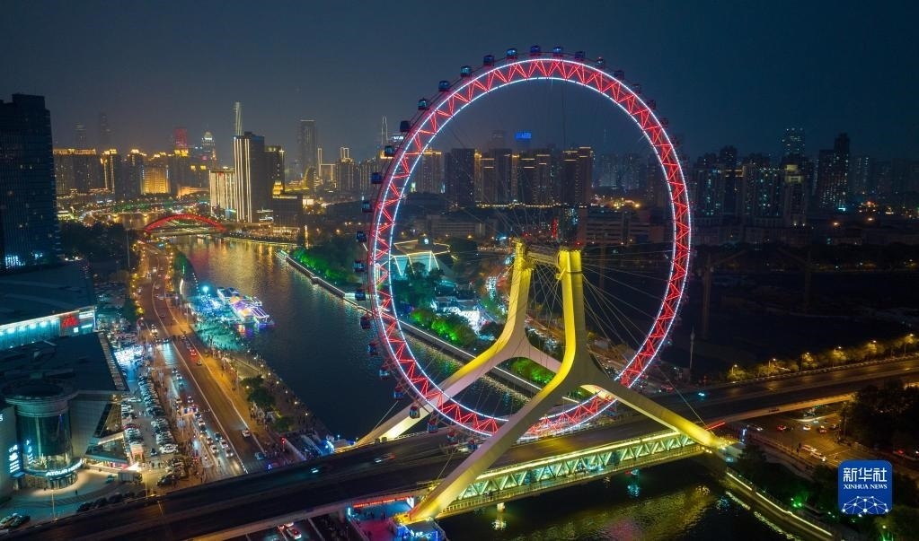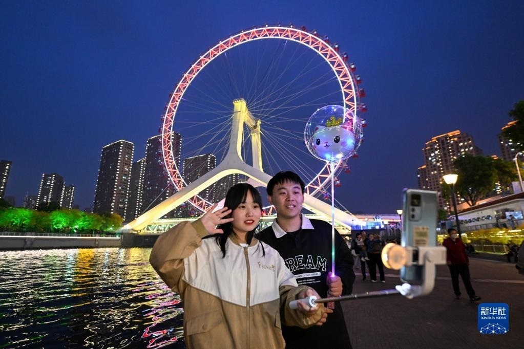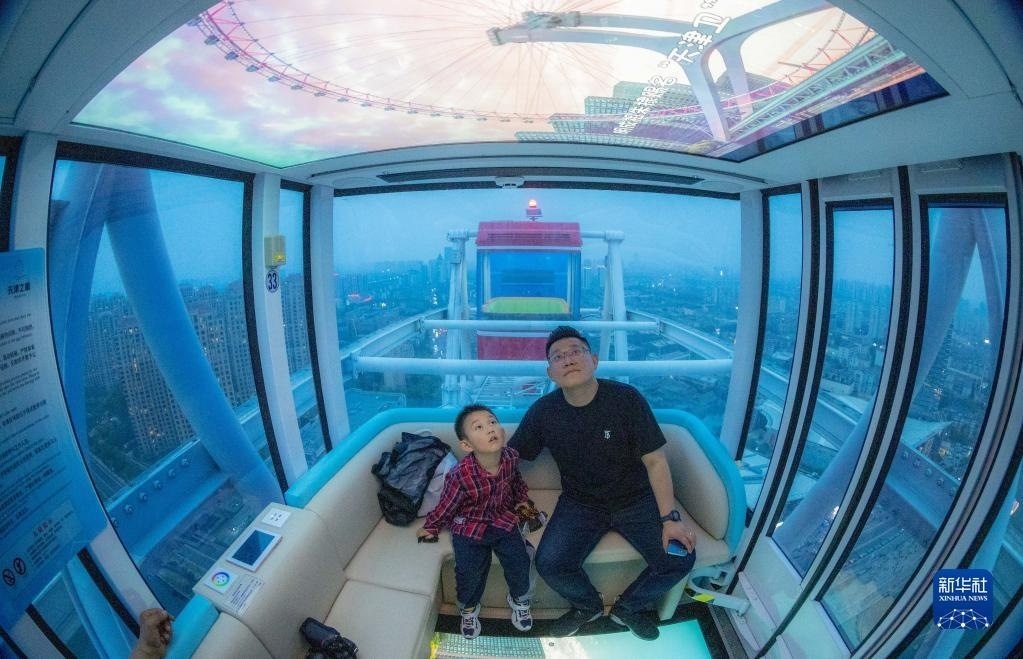 近日,天津市地標(biāo)景觀之一的“天津之眼”摩天輪完成整體更新改造,迎接即將到來的“五一”假期。此次提升改造更換了48個全新轎廂,包含12個內(nèi)設(shè)天屏和地屏的“智能科技”主題轎廂,用來播放天津文旅宣傳視頻,增強(qiáng)游客的觀景體驗(yàn)感。新華社記者 孫凡越 攝