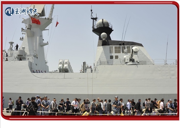 他們中的很多人是由中國艦船從蘇丹接護到沙特再乘機返回的,在輾轉途中,譚主記錄下這樣一幕,有一位手持國旗的女同胞,在即將踏上中國艦船的舷梯時,激動地失聲痛哭。