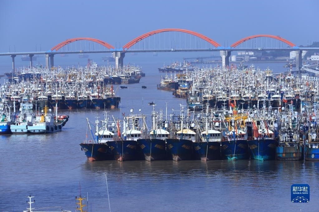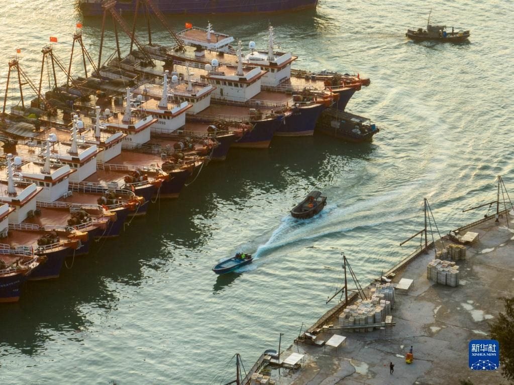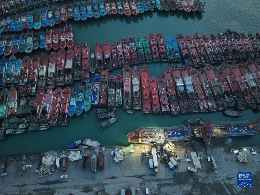 4月30日清晨,在浙江省舟山市普陀區(qū)沈家門漁港,漁船陸續(xù)進港準備休漁(無人機照片)。