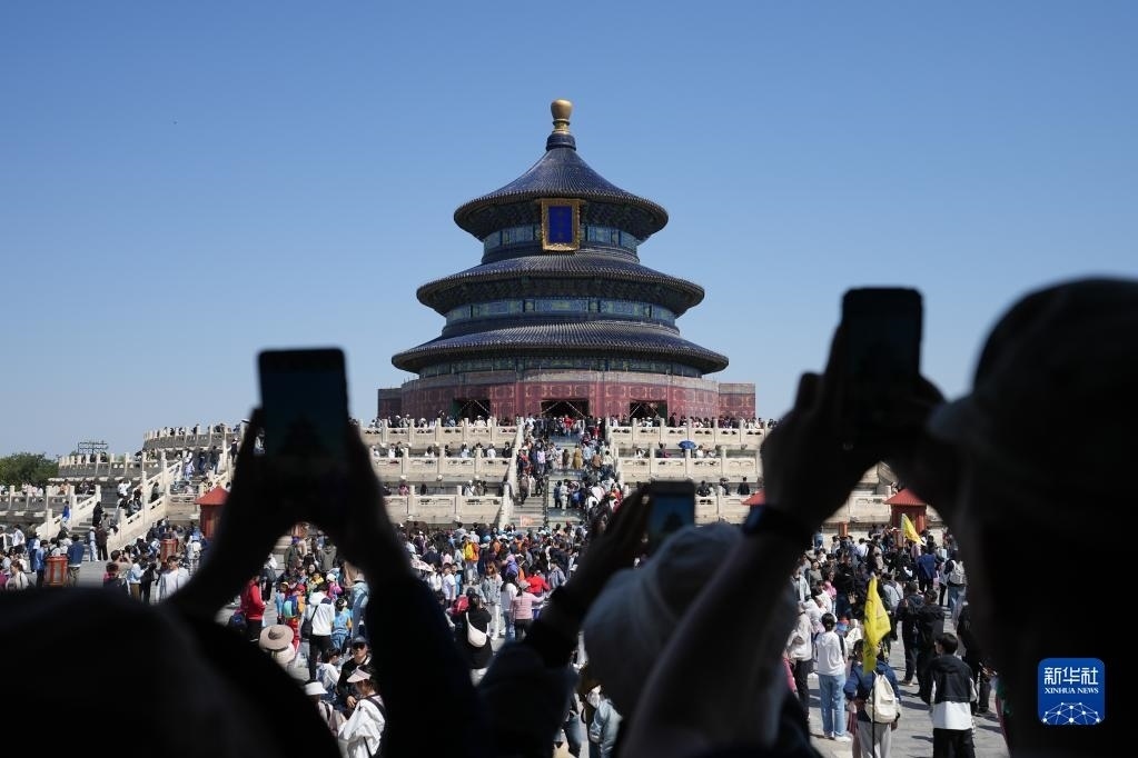 4月29日,游客在北京天壇公園參觀游覽。   新華社記者 鞠煥宗 攝