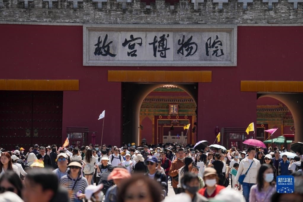 4月29日,游客在參觀結(jié)束后走出故宮博物院。   新華社記者 鞠煥宗 攝