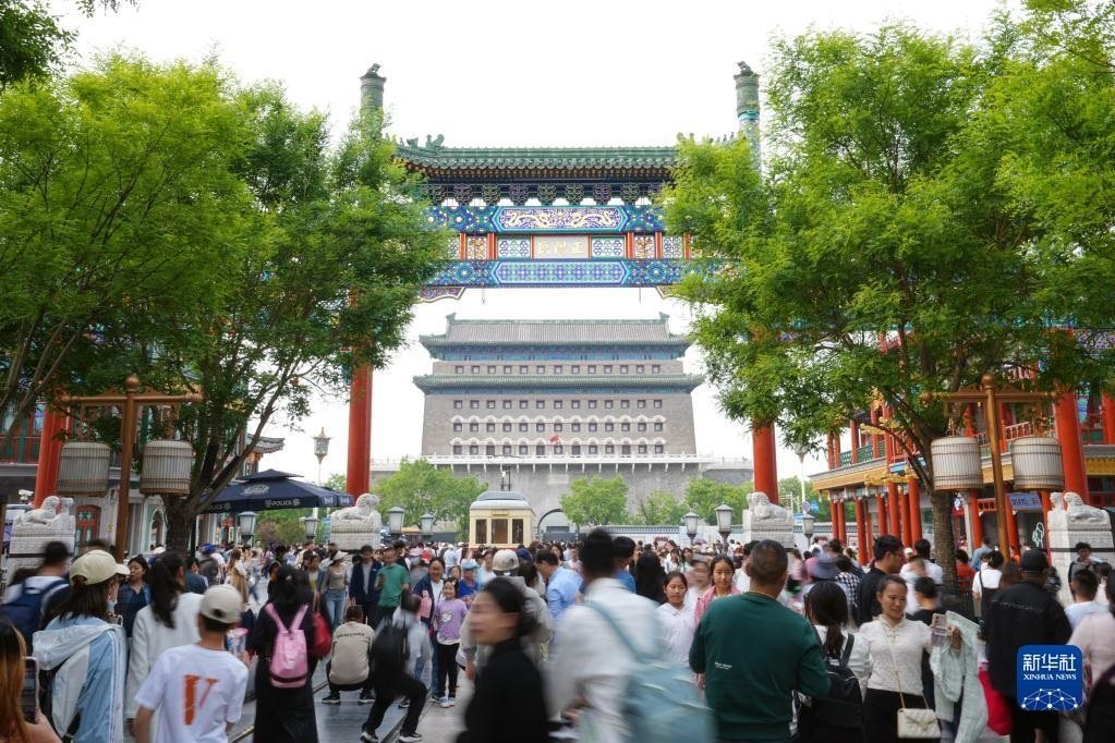 5月1日,游客在北京前門大街參觀游覽。   新華社記者 鞠煥宗 攝