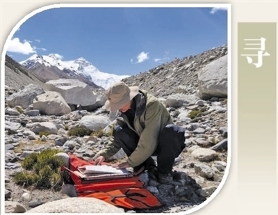 中國(guó)科學(xué)院昆明植物研究所中國(guó)西南野生生物種質(zhì)資源庫(kù)采集員在珠峰大本營(yíng)采集種子標(biāo)本。蔡 杰攝(人民視覺)