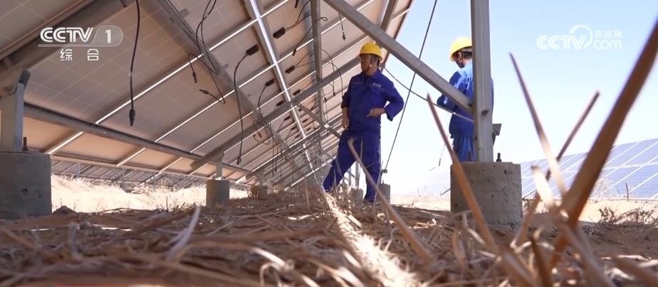 每次沙塵天氣過后,都是檢修工李玉華和徒弟曹志浩最忙碌的時(shí)候。他們需要檢查的光伏板占地7000多畝,依次排開長(zhǎng)度有120多公里,要一周才能檢查完。