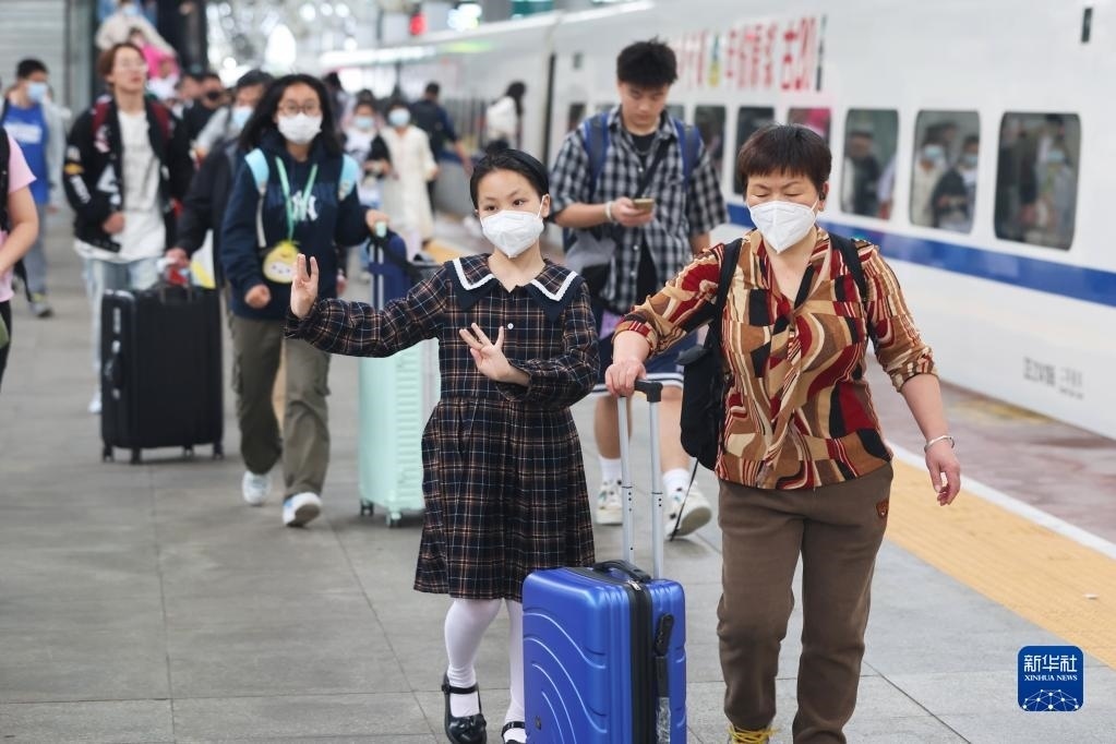 5月3日,旅客在南京火車站乘車出行。   新華社發(fā)(蘇陽攝)