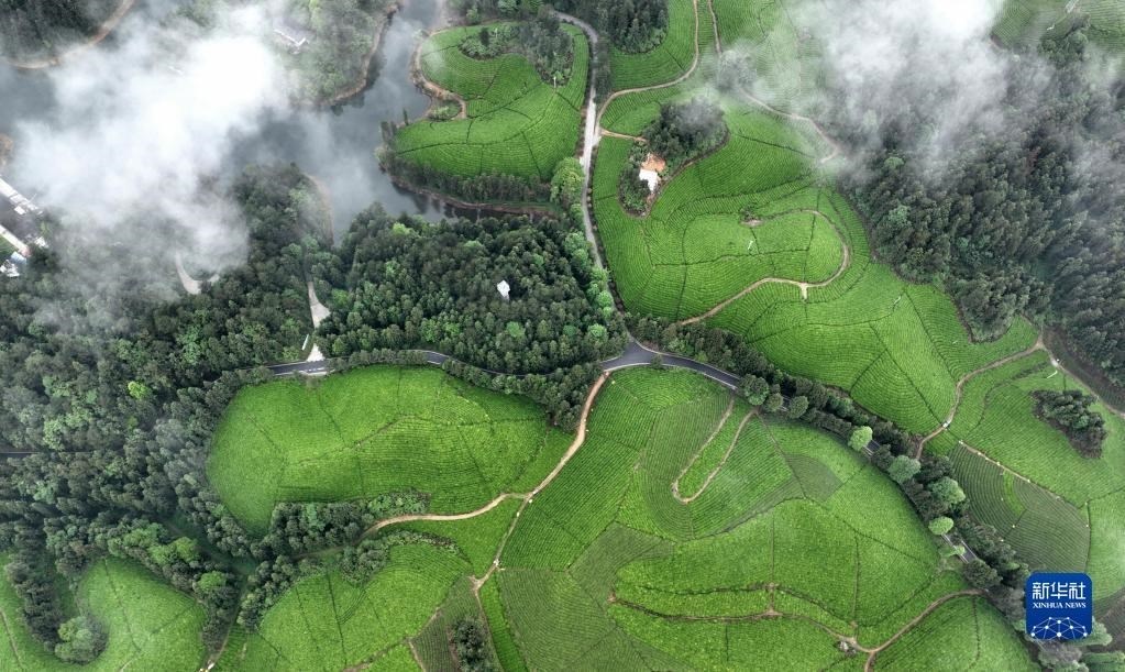 這是5月8日拍攝的鶴峰縣走馬鎮(zhèn)的茶園(無人機(jī)照片)。