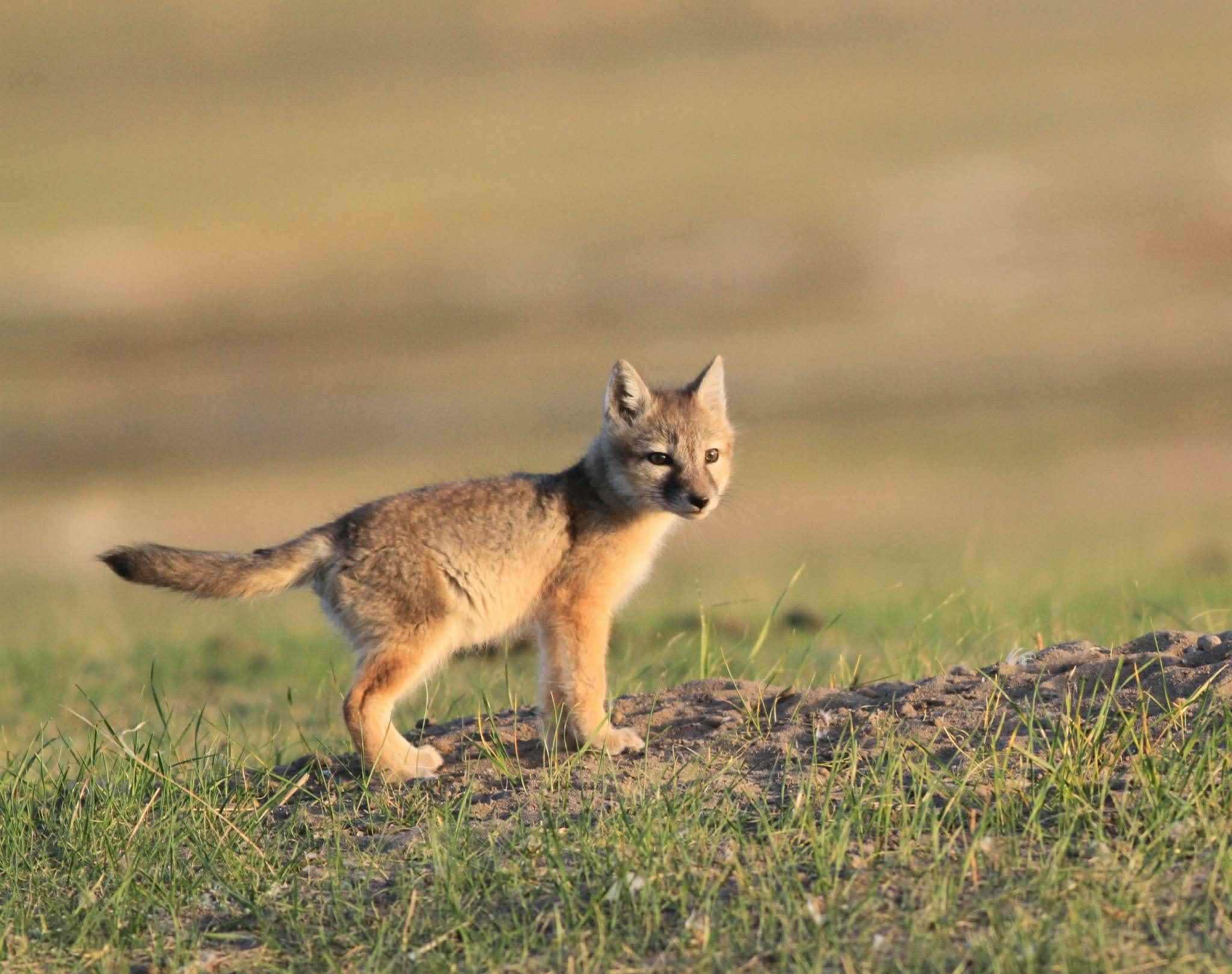 2023年5月7日,河北張家口,沽源縣閃電河國家濕地公園,幾只小沙狐從洞里慢慢出來,探視外面的世界。視覺中國