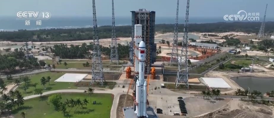 5月7日早上8時許,伴隨著指令聲,天舟六號貨運飛船和長征七號遙七運載火箭組合體在海南文昌航天發(fā)射場開始進行垂直轉運。在活動發(fā)射平臺的托舉下,長征七號遙七運載火箭駛出了總裝測試廠房。