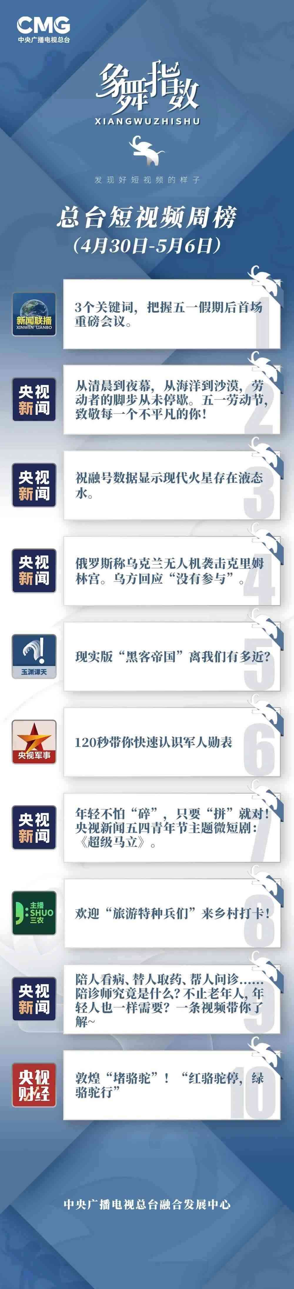 象舞指數(shù)|短視頻周榜(4月30日—5月6日)