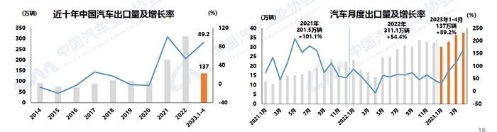 中新網(wǎng)5月11日電 (中新財(cái)經(jīng) 葛成)11日,中汽協(xié)發(fā)布汽車產(chǎn)銷數(shù)據(jù)。2023年4月,汽車產(chǎn)銷分別完成213.3萬輛和215.9萬輛,同比分別增長76.8%和82.7%;新能源汽車產(chǎn)銷分別完成64萬輛和63.6萬輛,同比均增長1.1倍;汽車企業(yè)出口37.6萬輛,同比增長1.7倍。