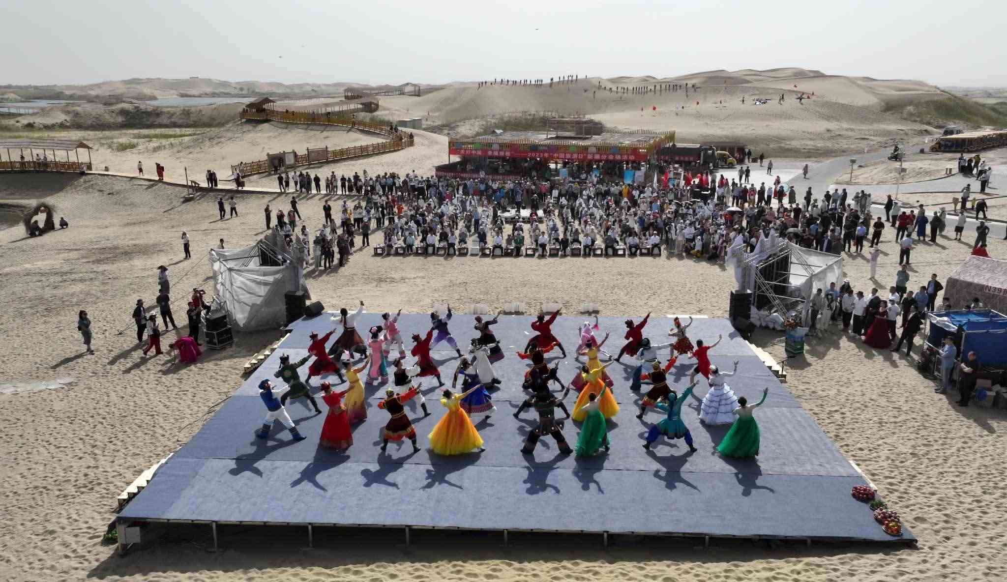 2023年5月19日是第13個(gè)“中國旅游日”。隨著當(dāng)天啟動的新疆維吾爾自治區(qū)2023年“5·19中國旅游日”各項(xiàng)旅游促銷活動,尉犁縣羅布人村寨一片歡騰,迎來了入夏首個(gè)旅游高峰。視覺中國