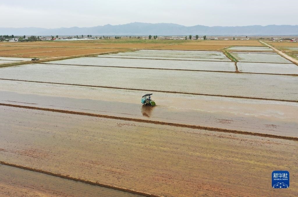 近日,內(nèi)蒙古達拉特旗3.8萬畝鹽堿地改良的水稻田迎來了插秧期,村民們在田間地頭開始忙碌。內(nèi)蒙古達拉特旗位于黃河岸邊,多年來,當(dāng)?shù)貙}堿化耕地實施改良,種植耐鹽堿水稻品種,幫助村民增收致富。   新華社記者劉磊攝