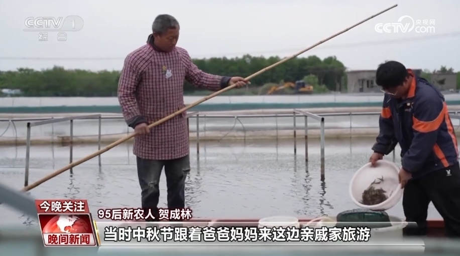 賀成林父親 賀國(guó)文:開始的時(shí)候是沒有支持他/他養(yǎng)蟹是比較非常辛苦的,平時(shí)要住在下塘邊上,半夜也要起來(lái)巡邏,風(fēng)吹日曬的看到他在養(yǎng)蟹的過(guò)程當(dāng)中一直在學(xué)習(xí),我能感受得到他能吃苦不怕困難的這種精神,才同意他。