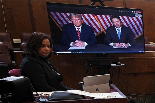 ·當(dāng)?shù)貢r(shí)間5月23日,美國前總統(tǒng)特朗普通過視頻會(huì)議出席了“封口費(fèi)”一案的預(yù)審聽證會(huì),庭審持續(xù)約15分鐘。