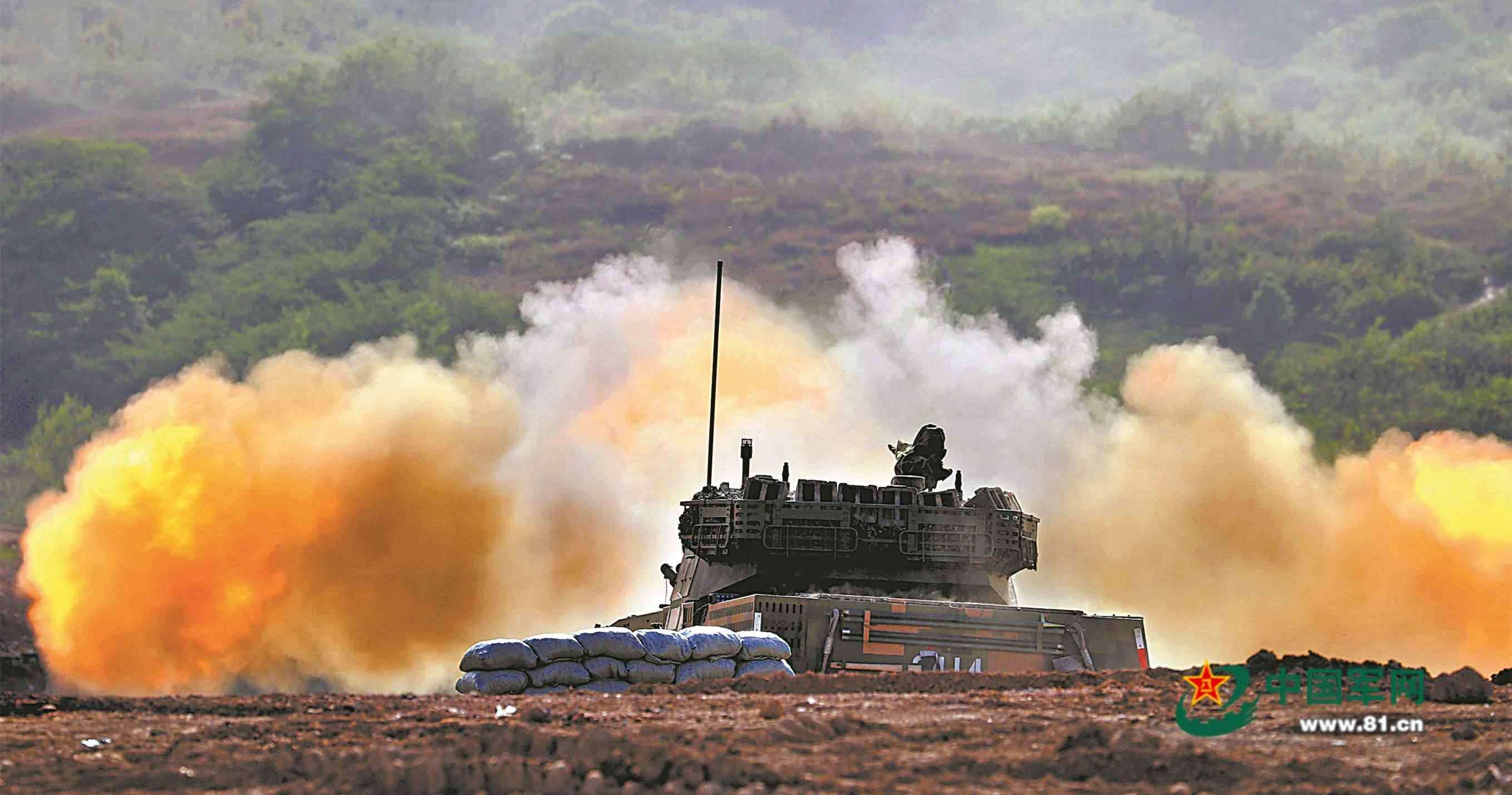 戰(zhàn)機(jī)稍縱即逝,偵察隊(duì)員立即向指揮所報(bào)告情況并呼叫炮火支援。各戰(zhàn)斗小組快速分發(fā)彈藥,戰(zhàn)車迅即駛向預(yù)備陣地?!澳繕?biāo)鎖定,射擊!”剎那間,一發(fā)發(fā)炮彈呼嘯著撲向“敵”陣地。
