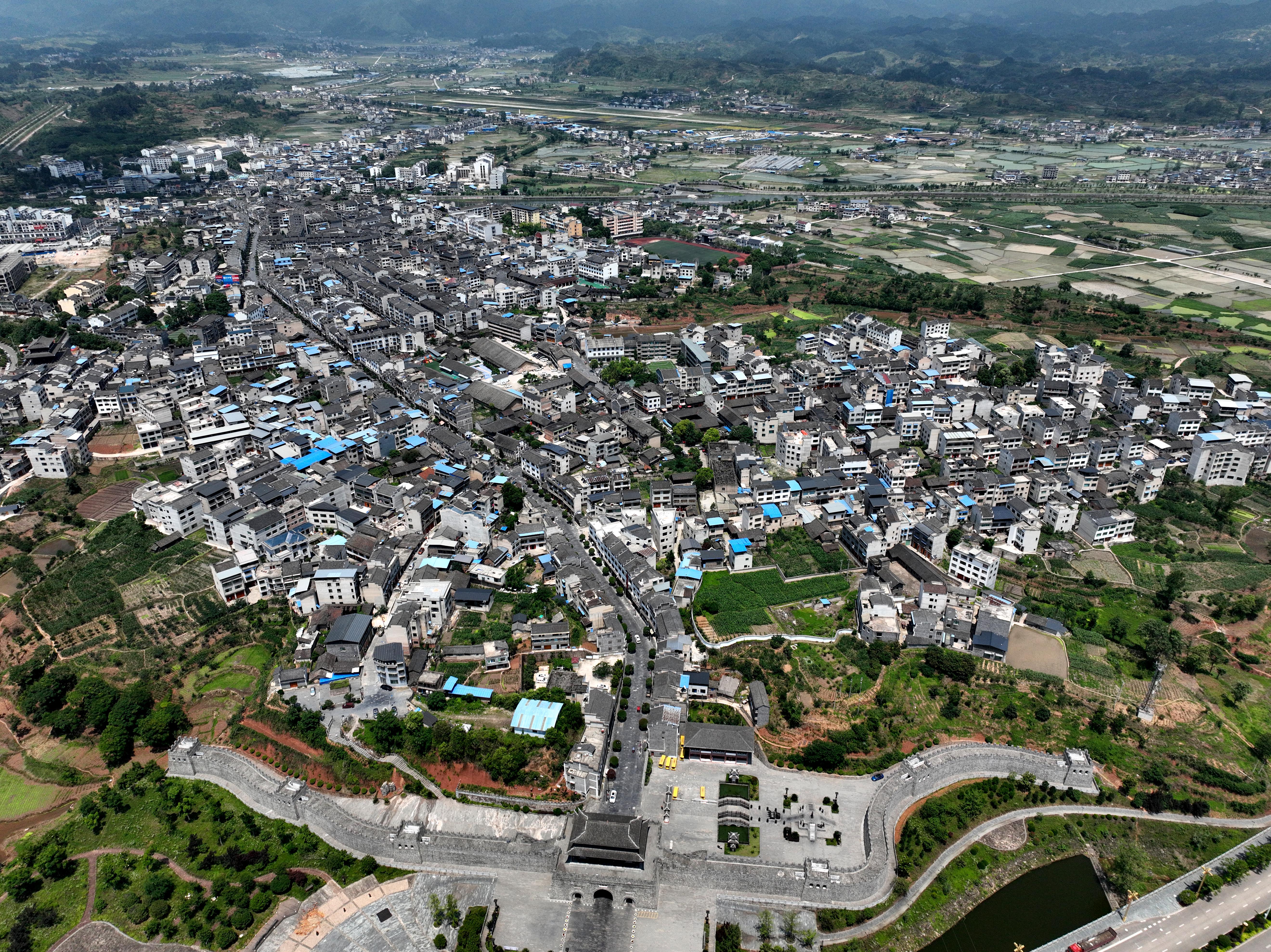 2023年5月27日拍攝的貴州省黃平縣舊州古鎮(zhèn)(無人機照片)。 (寧堅 趙軍)