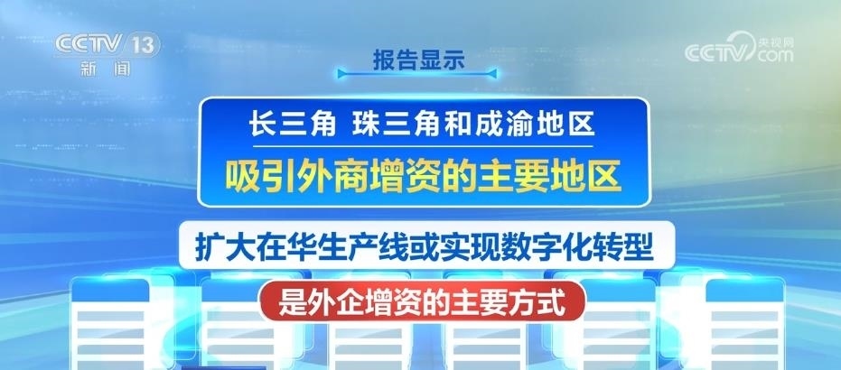報告顯示,長三角、珠三角和成渝地區(qū)是吸引外商增資的主要地區(qū)。擴大在華生產(chǎn)線或?qū)崿F(xiàn)數(shù)字化轉(zhuǎn)型是外企增資的主要方式。超七成受訪企業(yè)表示在華產(chǎn)業(yè)鏈布局將維持現(xiàn)狀或?qū)υ谌A產(chǎn)業(yè)鏈進一步本土化。