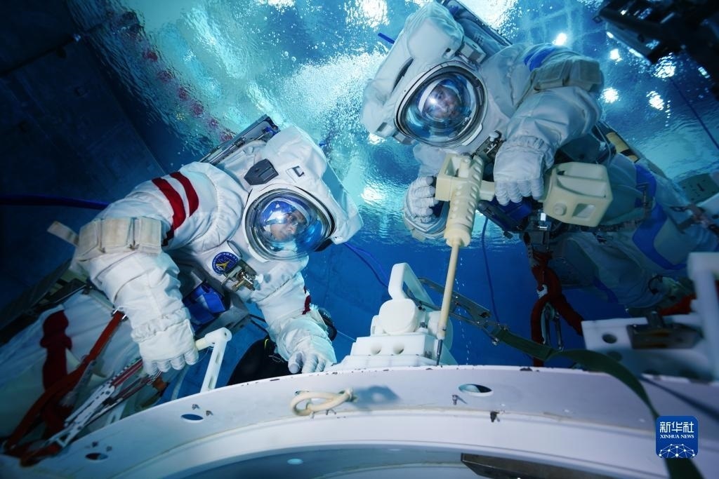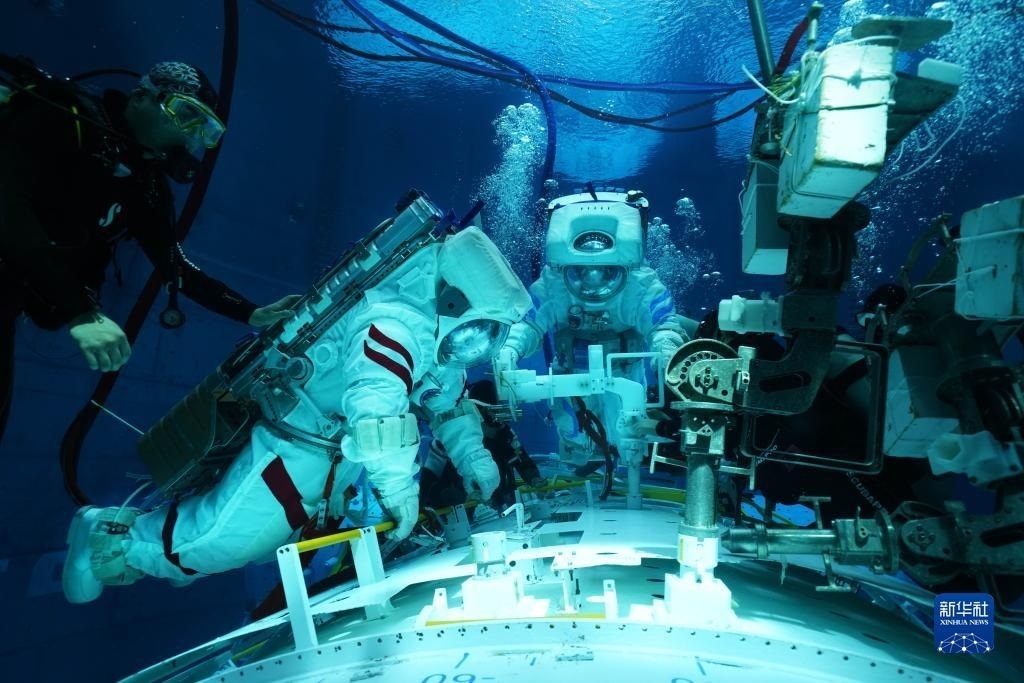 神舟十六號航天員在進行水下訓練(2022年9月14日攝)。新華社發(fā)(徐部 攝)