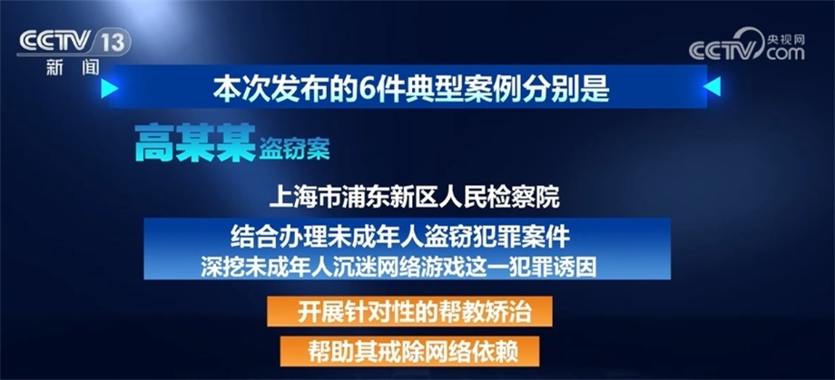 高某某盜竊案。上海市浦東新區(qū)人民檢察院結(jié)合辦理未成年人盜竊犯罪案件,深挖未成年人沉迷網(wǎng)絡(luò)游戲這一犯罪誘因,開(kāi)展針對(duì)性的幫教矯治,幫助其戒除網(wǎng)絡(luò)依賴。