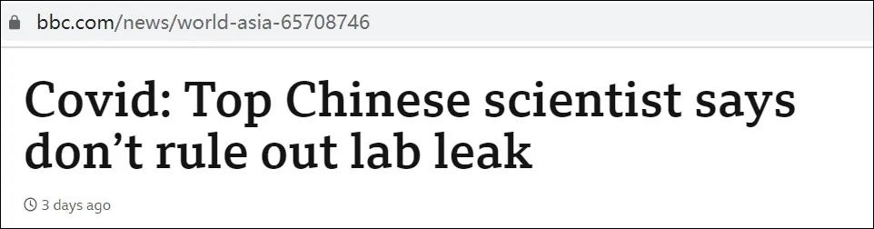 BBC標(biāo)題中所說的中國頂級科學(xué)家是中國科學(xué)院院士、中國疾病預(yù)防控制中心原主任高福。該報道稱,在“接受”BBC廣播四頻道播客《發(fā)熱:尋找新冠病毒的起源》“采訪”時,高教授說:“你總是可以懷疑任何事情。這是科學(xué)。不要排除任何可能性。”