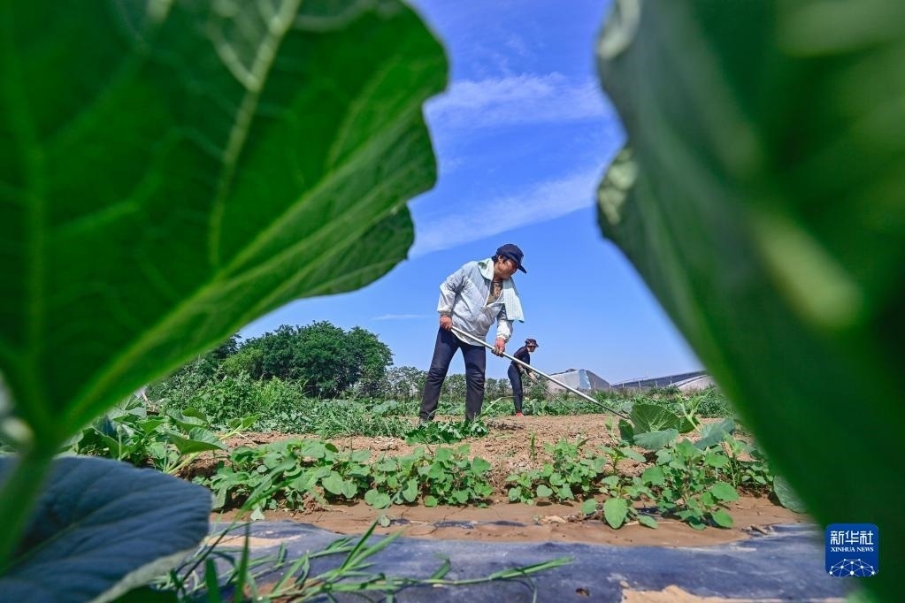 6月5日,在云南省麗江市玉龍納西族自治縣黃山街道長水社區(qū),菜農(nóng)在田里勞作。