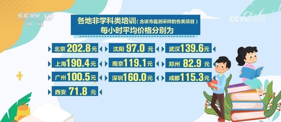 各地非學科類培訓(含該市監(jiān)測采樣的各類項目)每小時平均價格分別為:北京202.8元、沈陽97.0元、武漢139.6元、上海190.4元、南京119.1元、鄭州82.9元、廣州100.5元、深圳160.0元、成都115.3元、西安71.8元;與上月相比,北京上漲1.0%、沈陽上漲0.8%、武漢下降1.2%,其他城市價格保持不變。