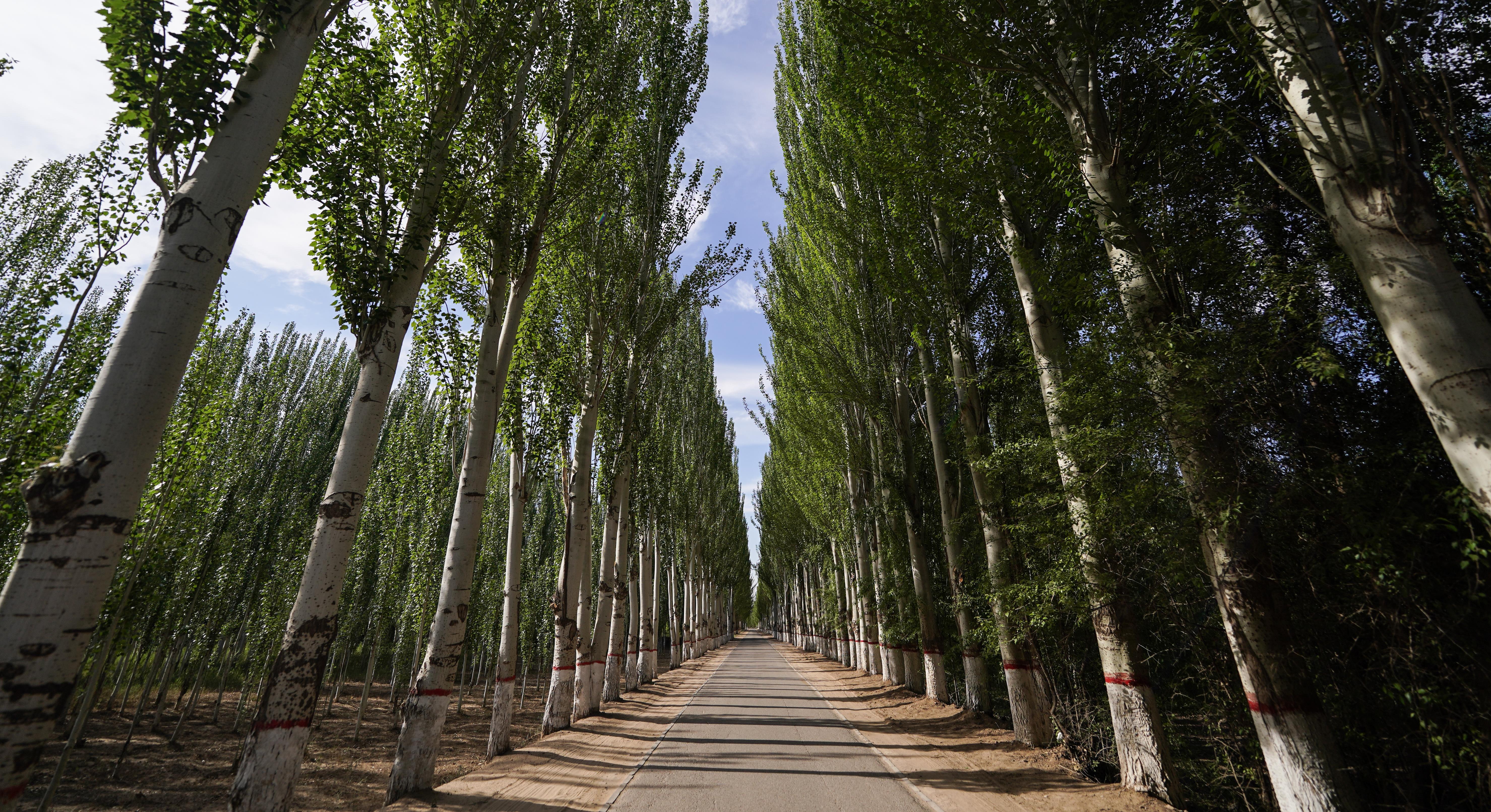 △內(nèi)蒙古巴彥淖爾市臨河區(qū)國營新華林場的防護林(總臺國廣記者李晉拍攝)