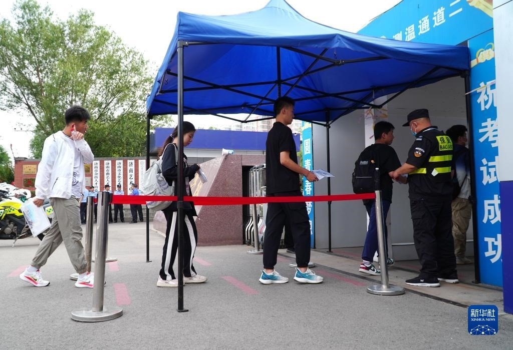 6月7日,在位于山東省濟(jì)南市的濟(jì)南藝術(shù)學(xué)??键c(diǎn),考生陸續(xù)進(jìn)入考場(chǎng)。   新華社記者徐速繪攝