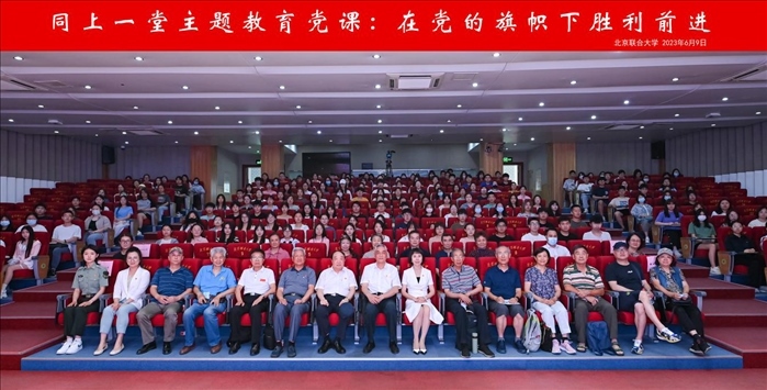 觀展后,參會嘉賓與管理學院200多名學生黨員及入黨積極分子在南院報告廳,共同開展“同上一堂主題教育專題黨課,在黨的旗幟下勝利前進”黨課活動。此次講座由管理學院黨委書記張玲娜主持,由北京新四軍暨華中抗日根據(jù)地研究會原副會長劉華蘇主講。